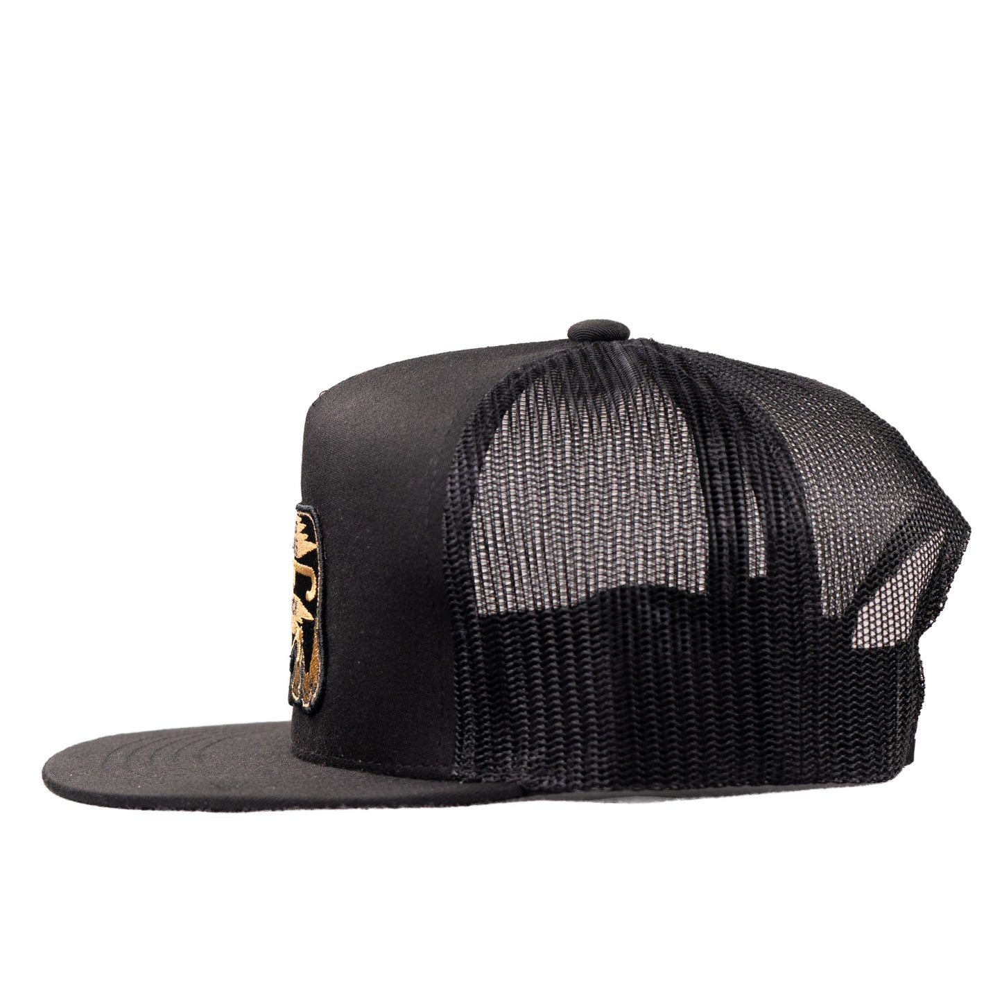 This is a brand new Youth Gold Rush Trucker Hat from Lazy J Ranch Wear in Black . Love our Classic Five Panel Trucker hats? Well we made a youth hat from this body style! Flat bill, five panel. This brand-new Youth Five Panel Flat Bill Trucker Hat brings our classic adult fit down to size, made tough enough for feed runs, fishing trips, and every dusty driveway in between. We’re known for this iconic five-panel look — and now the next generation gets their turn.