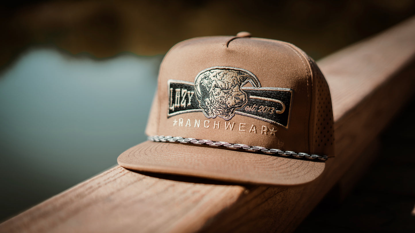 Lazy J Ranch Tan Diamond Banner Performance Classic Rope Trucker Hat