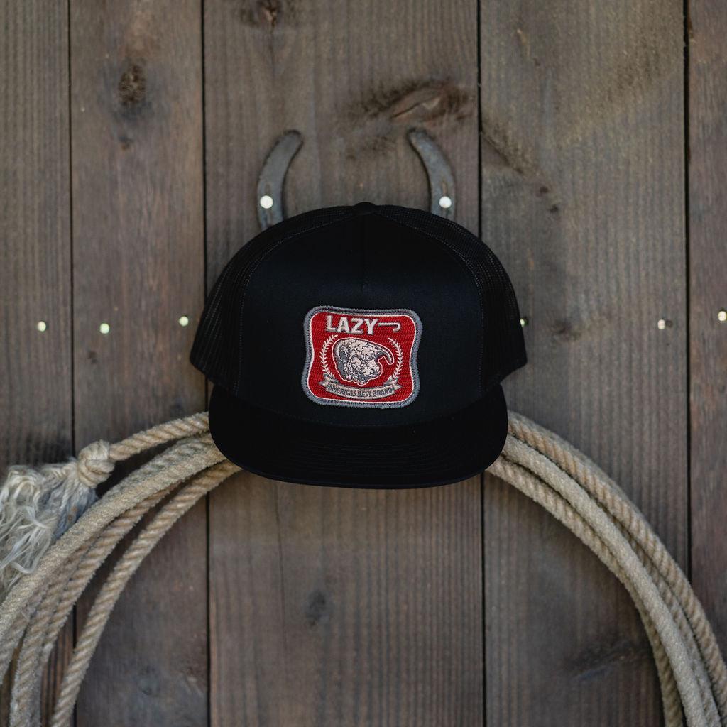Lazy J Ranch Black Red America's Best Brand Classic Five Panel Trucker Hat