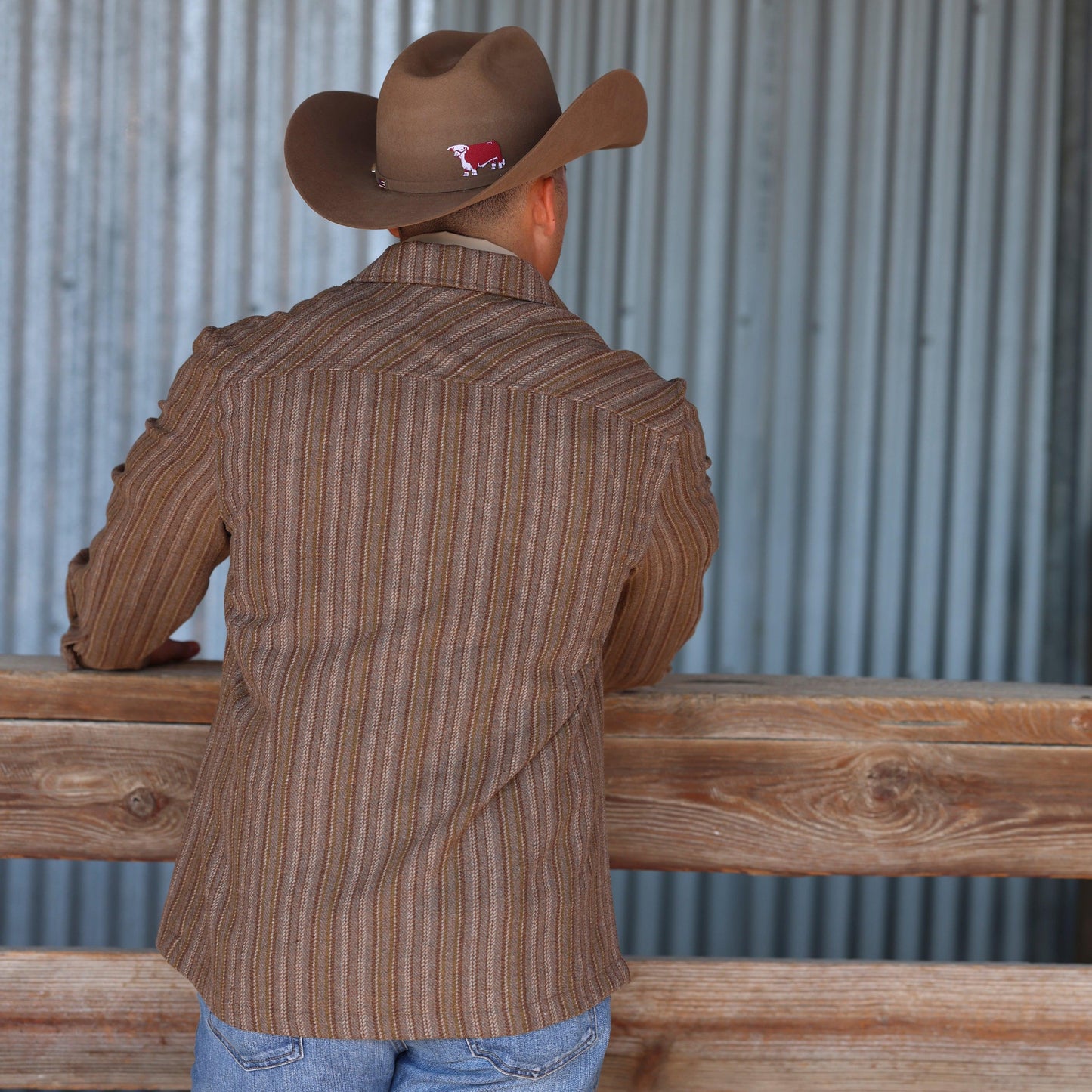 Introducing the Lazy J Ranch Men's Striped Jacket - Sequoia Brown, a Classic Western Zip-Up.