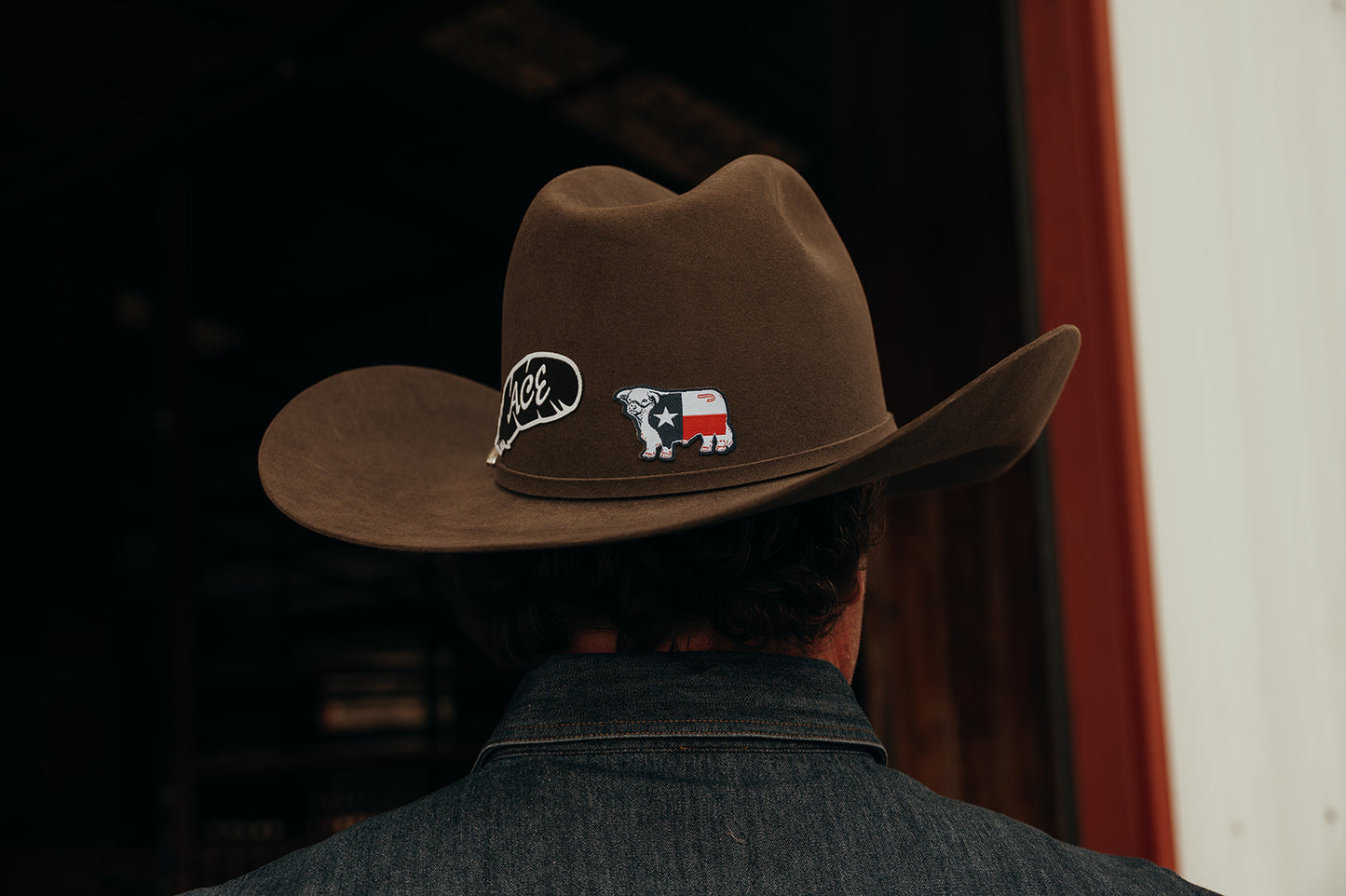Rep the Lone Star State with a patch that’s as bold as Texas itself. Woven with a detailed cow silhouette and the Texas flag stitched right in, this piece is made to ride along on your favorite hat. Easy to stick on straw or felt, tough enough for long days under the sun, and clean enough for a night in town. Built with durable twill and thread, this patch offers crisp detail and long-lasting color that stands out on any cowboy hat. The peel-and-stick backing makes it easy to apply to straw or felt hats, caps, and other gear, while its lightweight design ensures a smooth, comfortable fit. Perfect for ranch wear, rodeos, or everyday Western style, this Texas flag cow patch is a must-have accessory for any proud Texan.