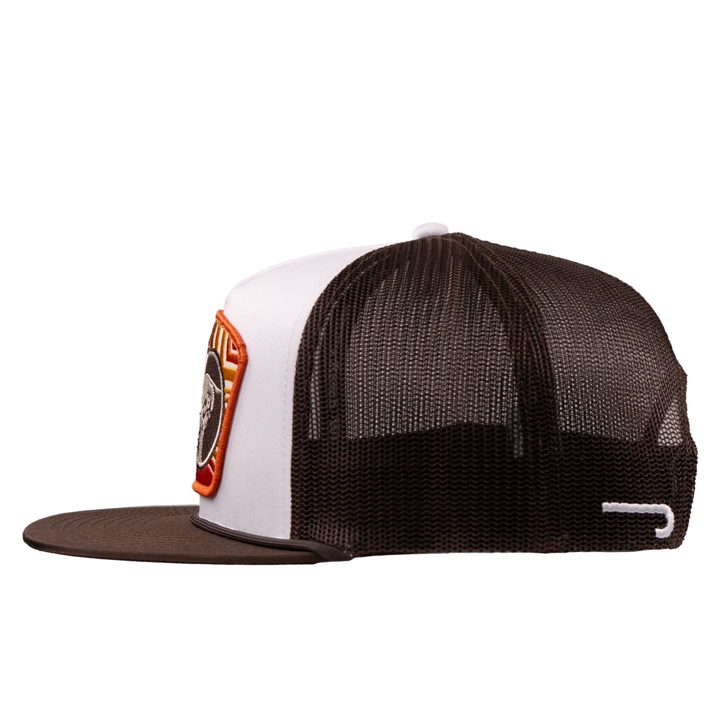 Rise and shine with the Lazy J Ranch Daybreak Classic Rope Trucker Hat in White & Brown. This high-profile, Five panel trucker hat combines classic ranch style with modern comfort.