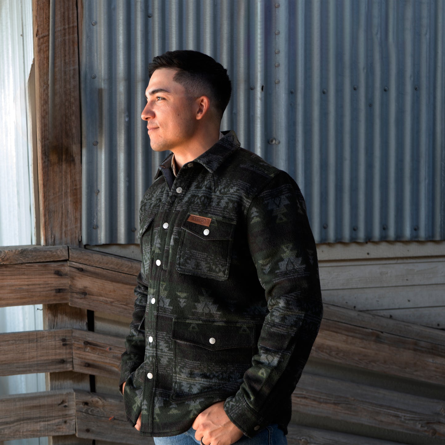 Lazy J Ranch Men's Aztec Print Jacket - Green