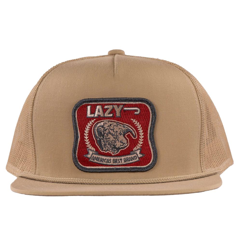 Elevate your wardrobe with the Lazy J Ranch Wear Tan Red America's Best Patch Classic Rope Trucker Hat today!